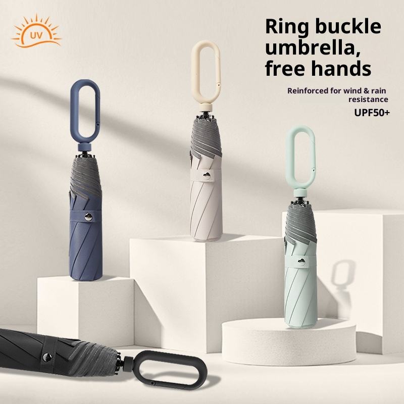 Paraguas de doble propósito con 8 varillas, anillo de apertura manual, reflectante de seguridad, de goma negra, con protección solar, para fabricantes, con logotipo personalizado.