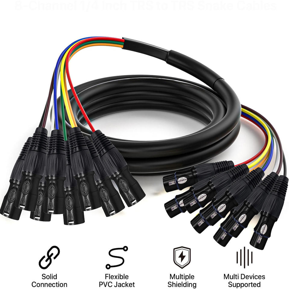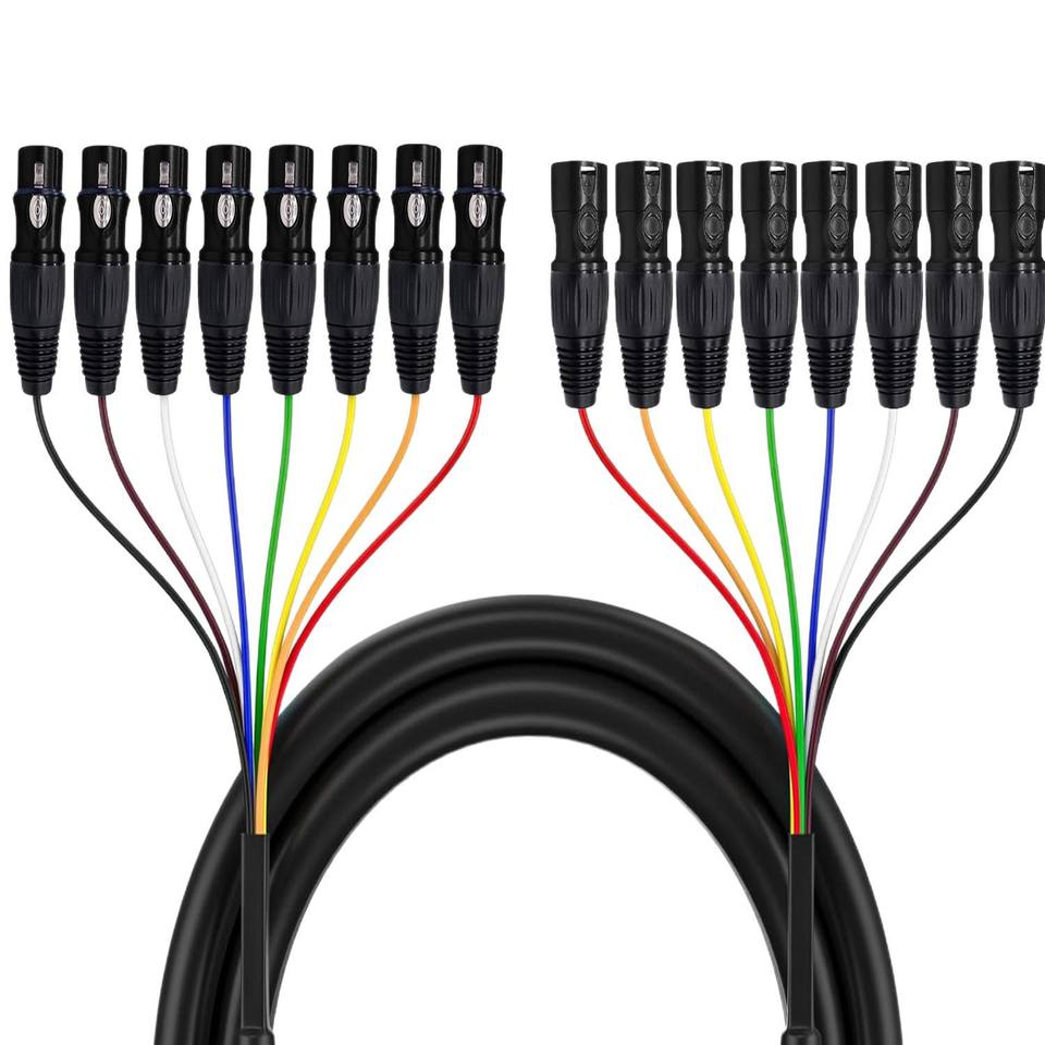 Cable de Señal de Audio XLR de 8 Canales y 3 Pines, 1M OFC, 8 Machos a 8 Hembras, Cubierta de PVC, Doble Blindaje para Micrófono, Transmisión y Grabación