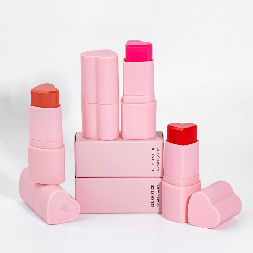 Barra de Rubor Mineral Mate en Forma de Corazón en 8 Colores, Resistente al Agua, con Alta Pigmentación, Acabado Natural, Larga Duración y Personalizable