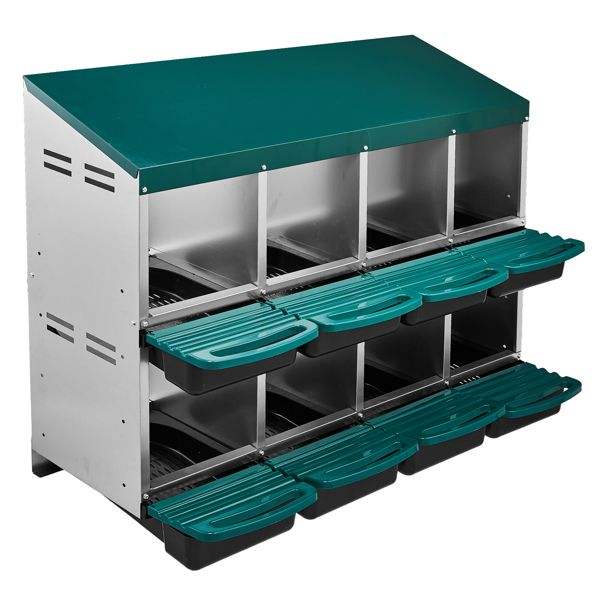 Nido para Gallinas de 8 Compartimentos con Sistema de Deslizamiento para Recolección Fácil de Huevos, Equipo de Nidificación para Gallinas de Montaje en Pared, Ganadería