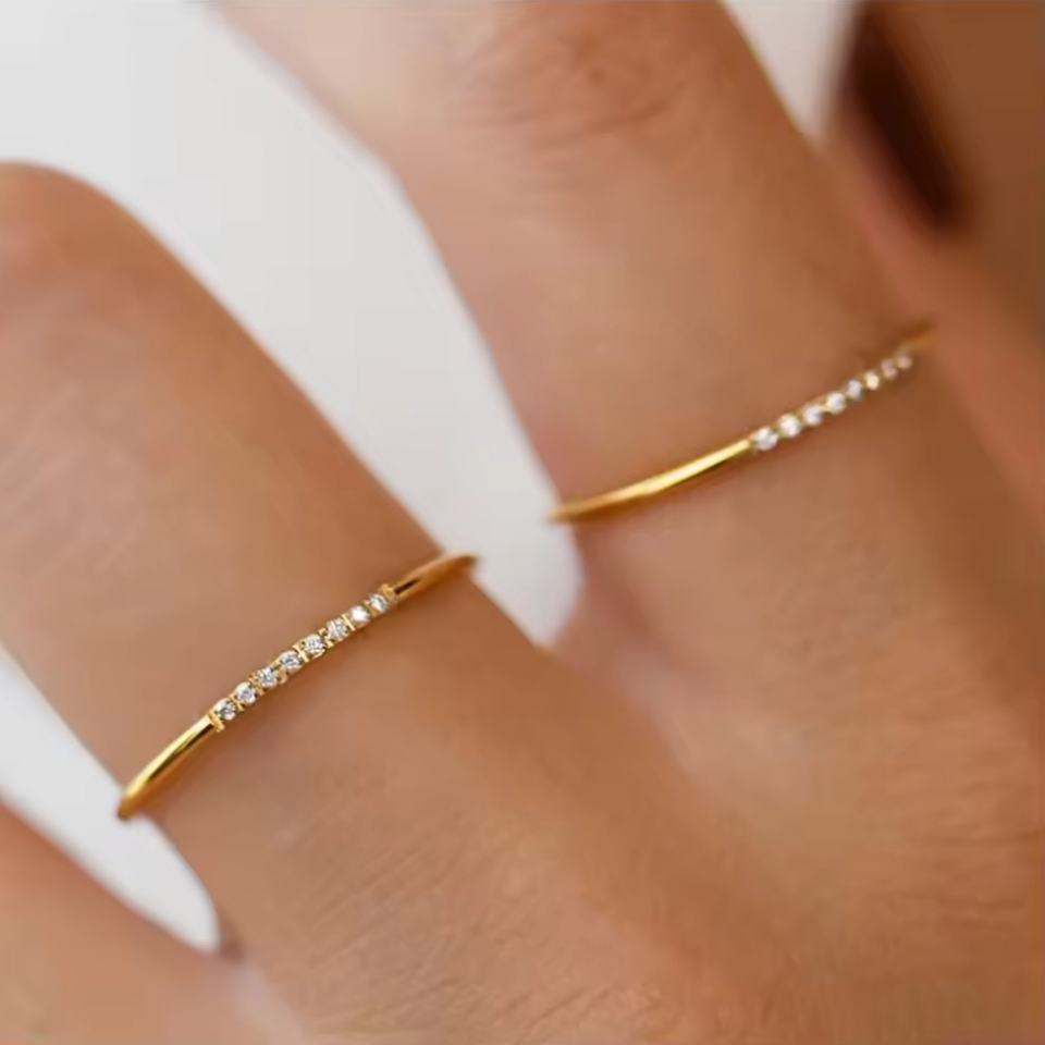 Anillo de Dedo Índice con 8 Diamantes, Diseño Simple y Elegante, Circonita Cúbica, Acero Inoxidable, Chapado en Oro de 18K, Joyería para Mujer