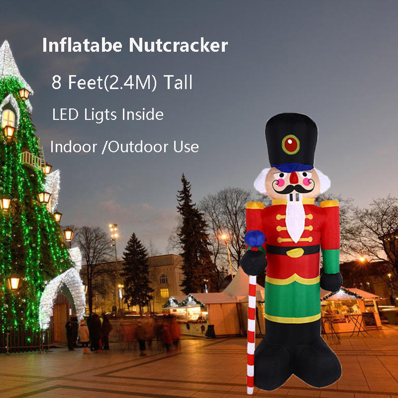 Cascanueces Inflable Gigante de 8 Pies con Luces Interiores, Decoración Navideña Inflable para Jardín