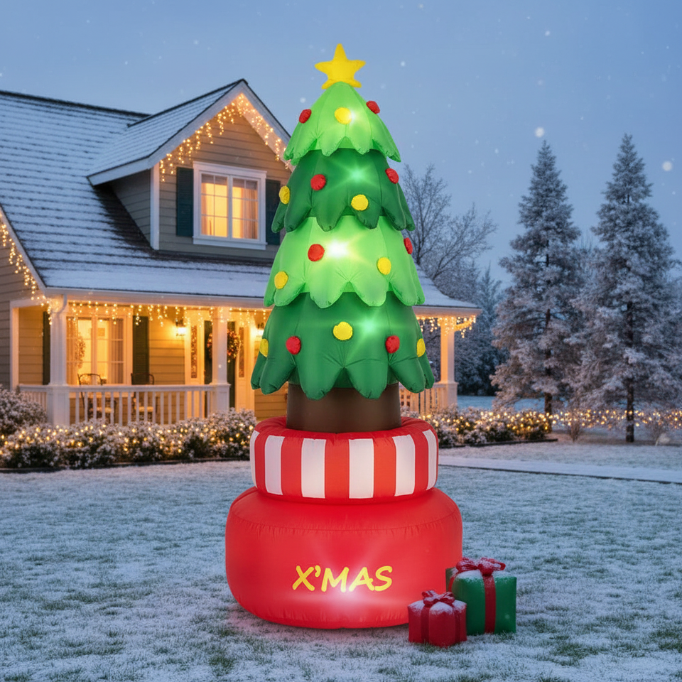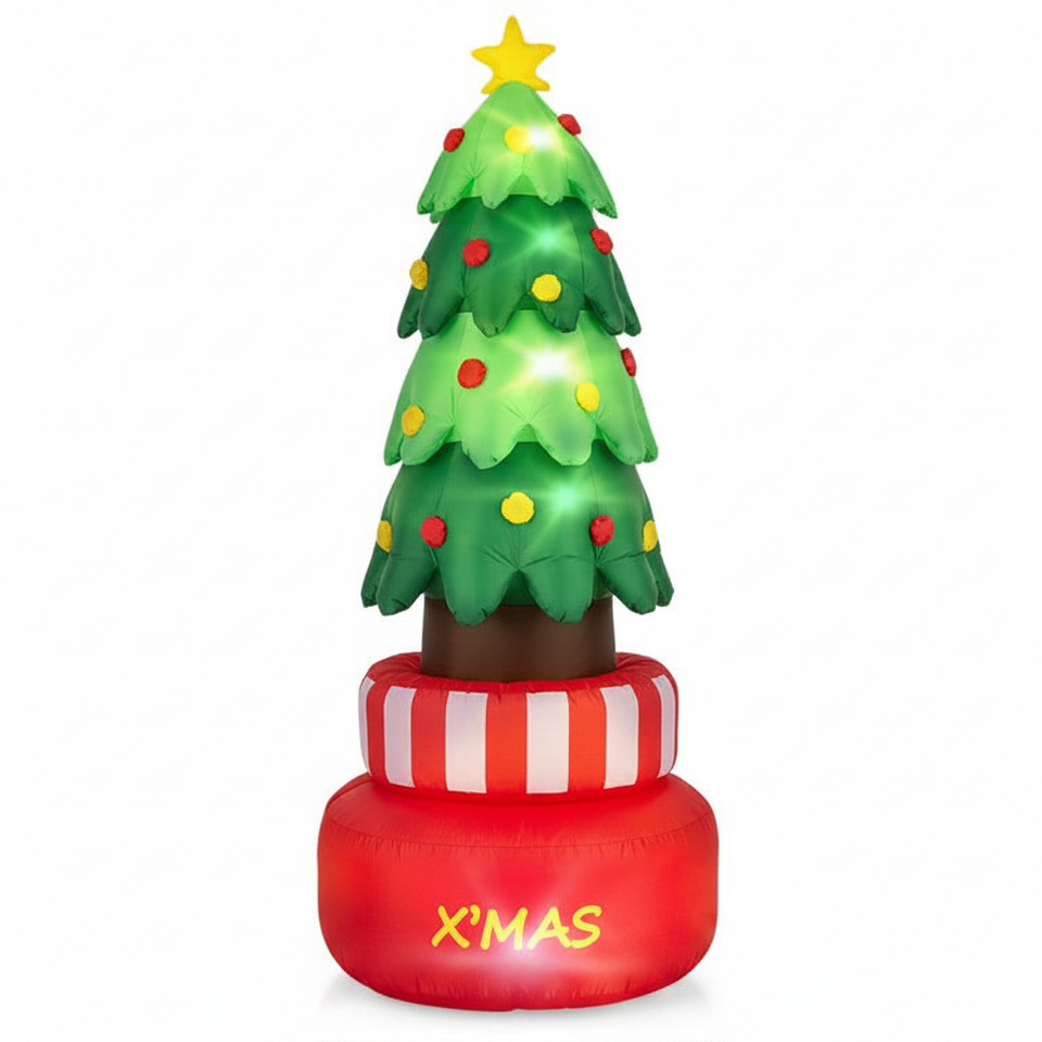 Árbol de Navidad giratorio inflable de 8 pies con luces LED integradas y bolsas de agua