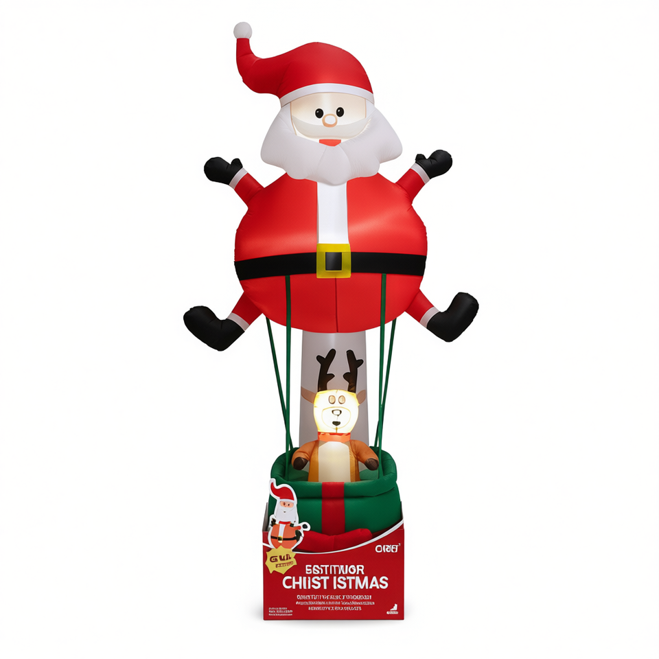 GIGI Santa Claus Inflable con Reno de 8 Pies, Decoración Navideña para Jardín Exterior