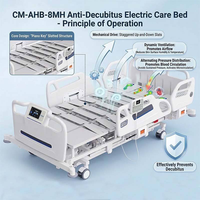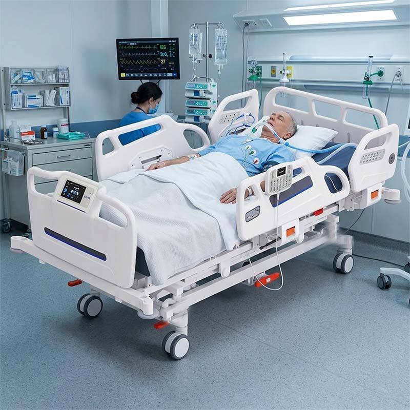 Cama de Hospital Eléctrica de 8 Funciones para Cuidados Intensivos, Cama de Paciente Eléctrica para Cuidados a Largo Plazo con Control de Enfermería