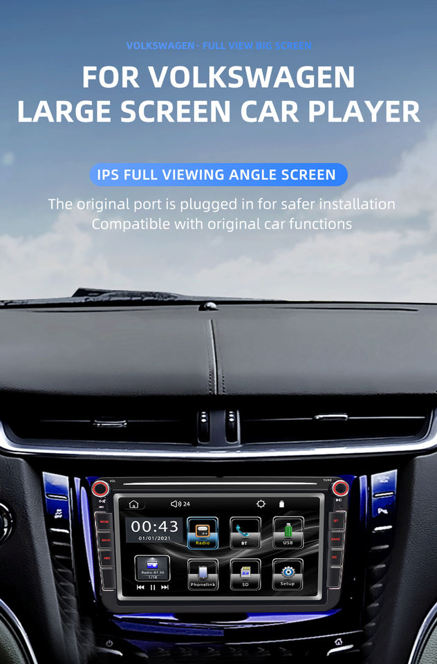 Reproductor Multimedia Estéreo para Coche de 8 Pulgadas 2 Din con GPS, CarPlay, Pantalla Táctil, FM, USB para Volkswagen/VW/Polo/Passat/SEAT/Toledo 9083C RoHS