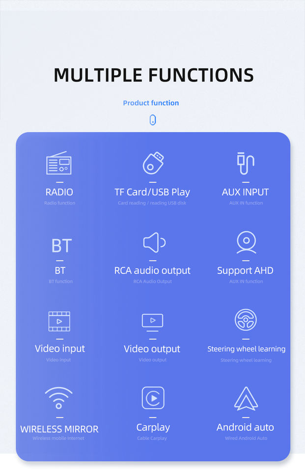 Soporte de Mirror Link: Soporta tanto el mirror link de iOS como de Android, permitiendo una integración sin problemas con tu smartphone para acceder cómodamente a las aplicaciones y medios.