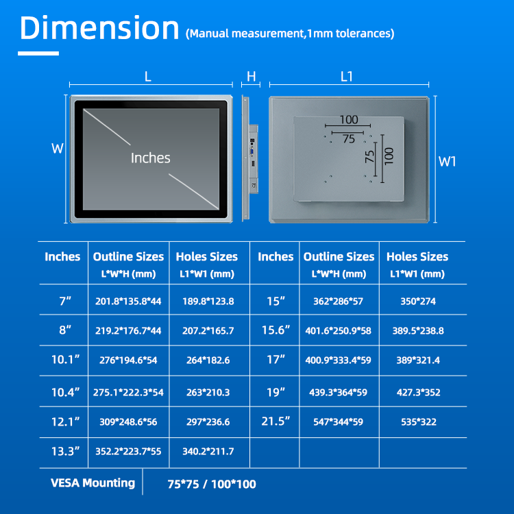 Tamaño de Pantalla LCD:8 pulgadas a 21.5 pulgadas