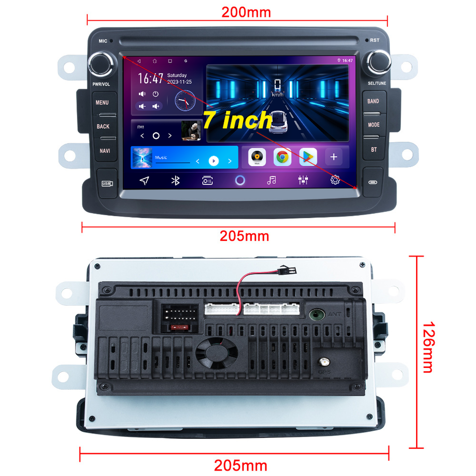 Radio Reproductor Android de 8 Pulgadas para Renault Sandero/Duster/Logan/Dokker/Dacia con GPS, Wifi, FM, Carplay y 7 Colores de Luz, Estéreo para Auto