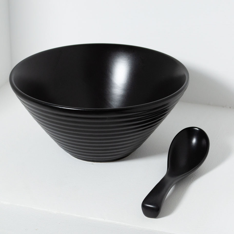 Juego de cuencos de Ramen Vintage de cerámica de 8 pulgadas con cuchara, cuenco grande para sopa de fideos con cucharas para Pho Udon asiático Soba Matting Black
