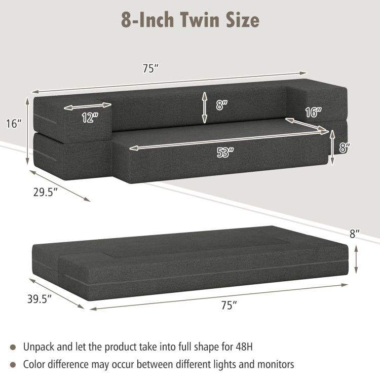 Sofá Cama Convertible Plegable de 8 Pulgadas con Funda Lavable, Cómodos Sofás Cama Convertibles