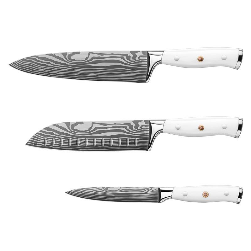 Juego de cuchillos Santoku de chef con patrón de Damasco de 8 pulgadas, cabeza de acero doble con mango de ABS, colección de cuchillos de cocina de acero inoxidable