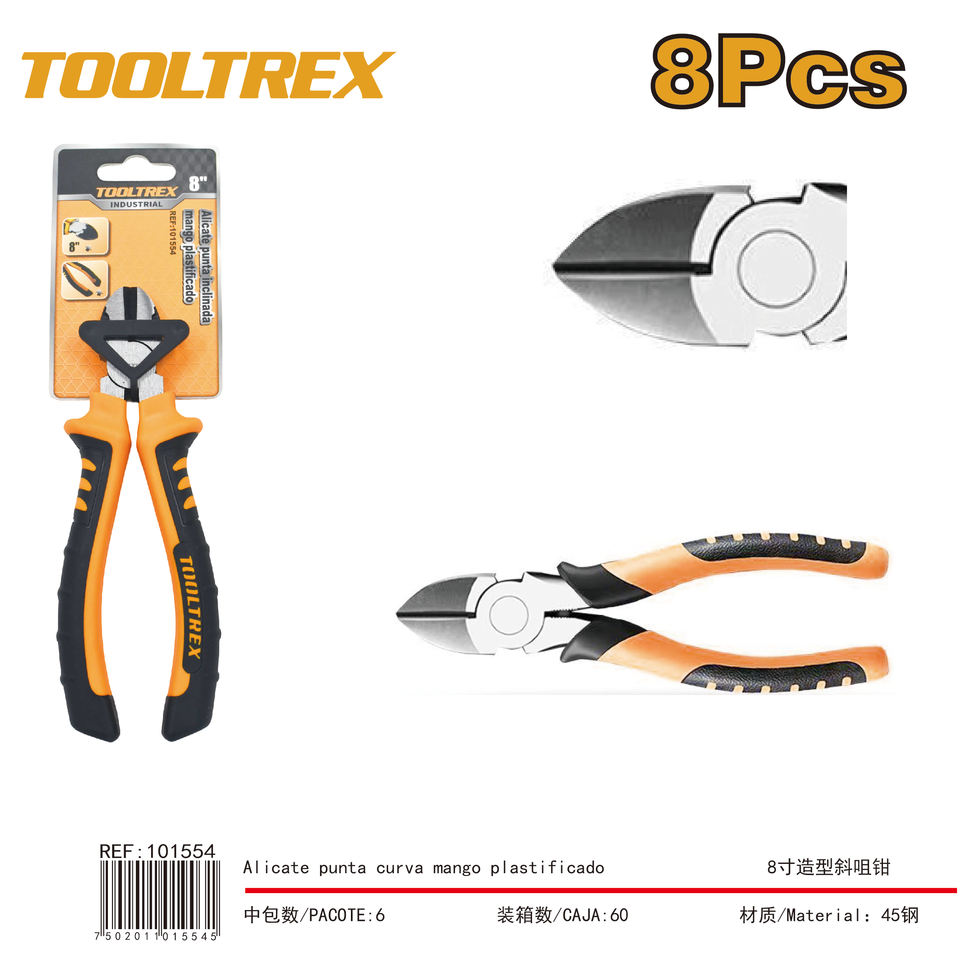 Alicates Diagonales Tooltrex de 8 Pulgadas, Acero al Carbono, Mango de PVC, Mordaza Dentada, Uso Industrial y Bricolaje