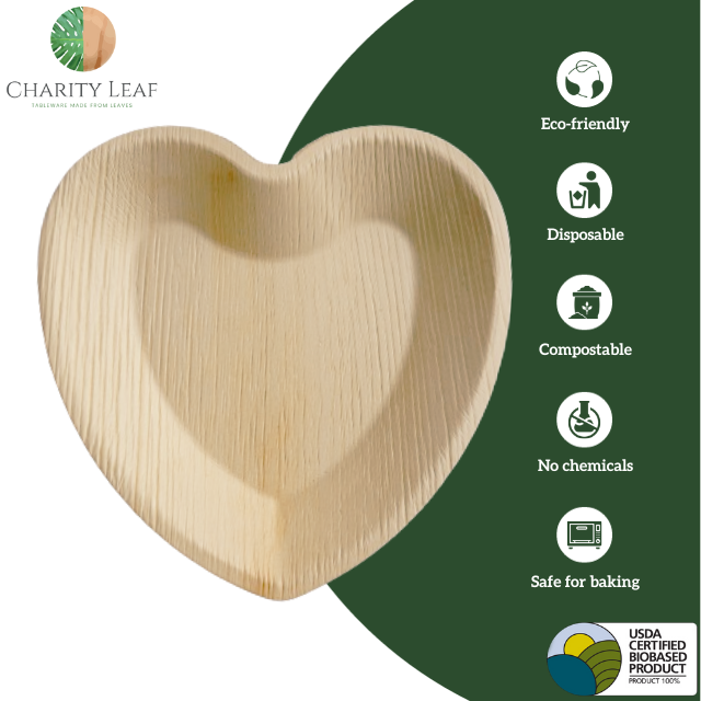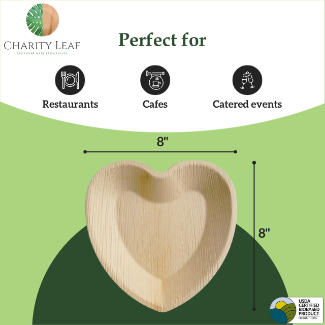 Plato Desechable de Hoja de Palma Natural en Forma de Corazón de 8 Pulgadas