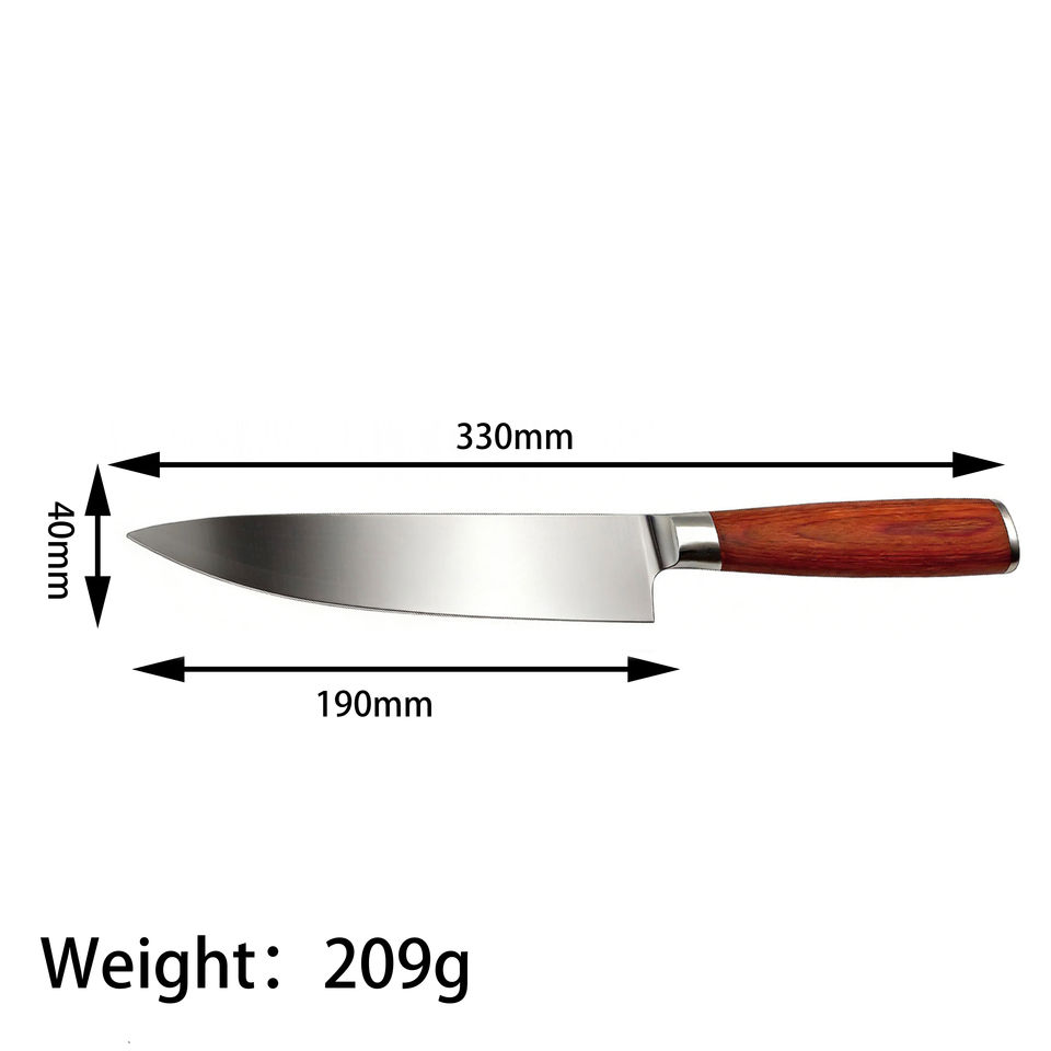 Cuchillo de Chef de Acero Inoxidable de 8 Pulgadas con Mango de Madera, Cuchillos de Cocina