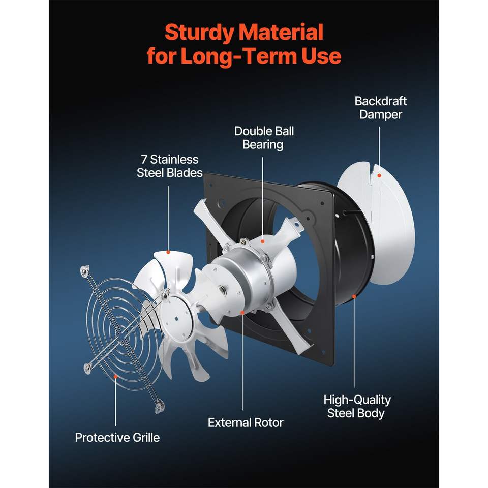 Ventilador de Pared de Alta Velocidad de 8 Pulgadas, 576 CFM, Control de Encendido/Apagado, Bajo Consumo, Ventilador de Extracción Portátil con Funciones Adicionales