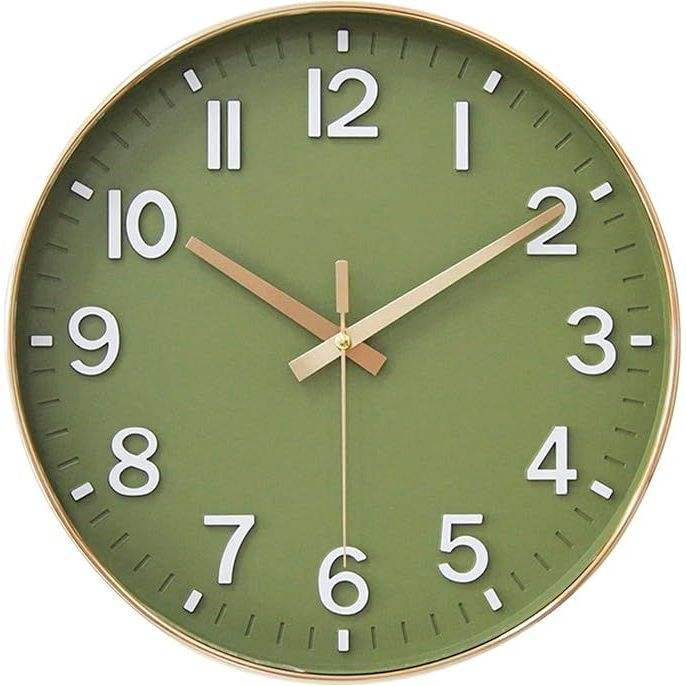 Reloj de Pared 3D Moderno de 8 Pulgadas, Funciona con Batería, Verde Dorado, Silencioso, Sin Tictac, para Cocina, Dormitorio o Sala de Estar