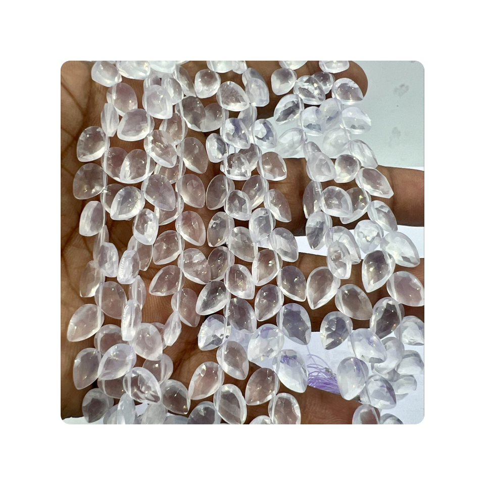 Cuentas de cuarzo de hielo Natural de 8 pulgadas, taladro elegante, gotas de Briolette, hebra de piedras preciosas de cuarzo para la fabricación de joyas, cuentas de piedra de cuarzo Natural