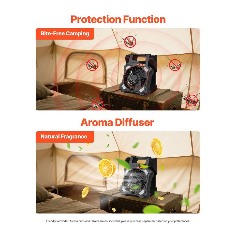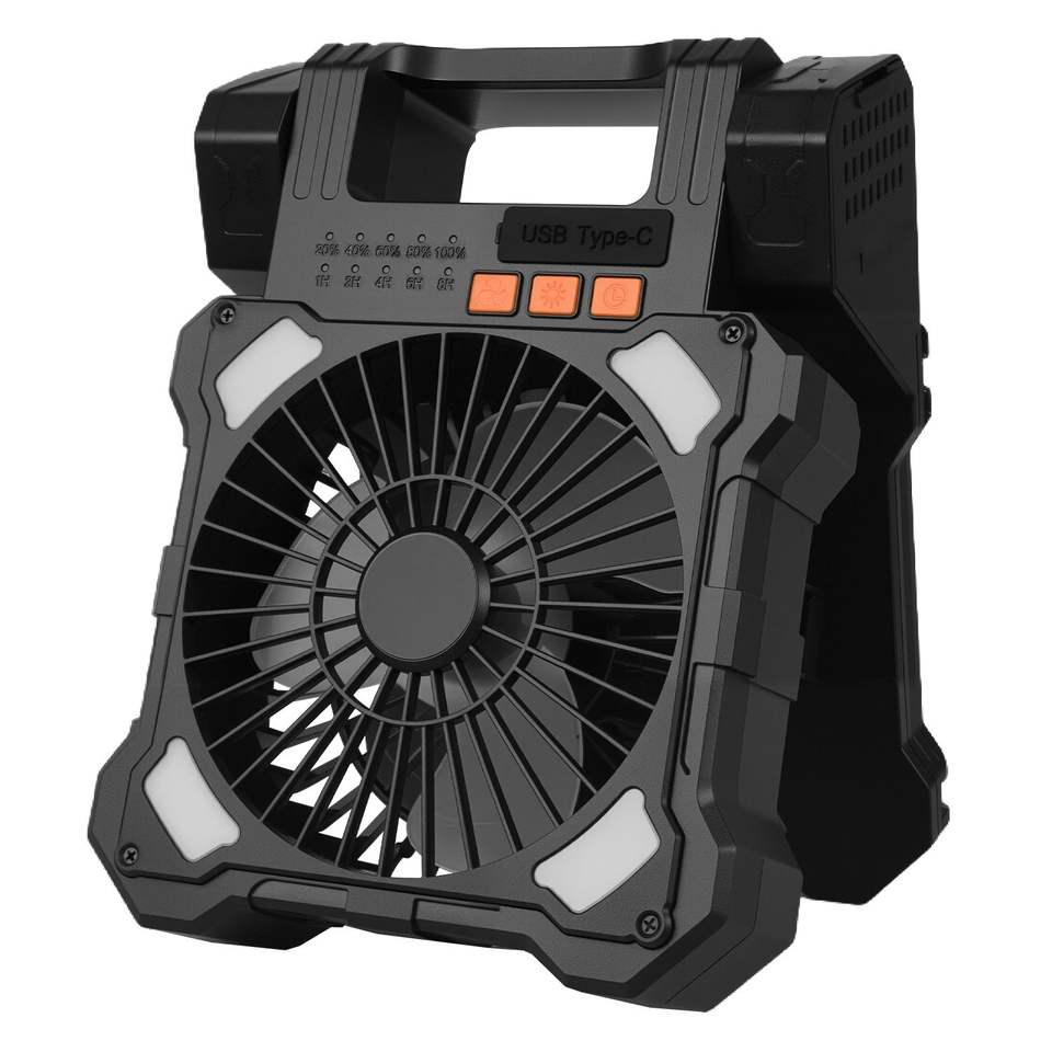 Ventilador Solar Inalámbrico Portátil de 8 Pulgadas con Linterna LED Recargable de 20000 mAh, Panel Plegable de 7 W y Temporizador de 5 Velocidades