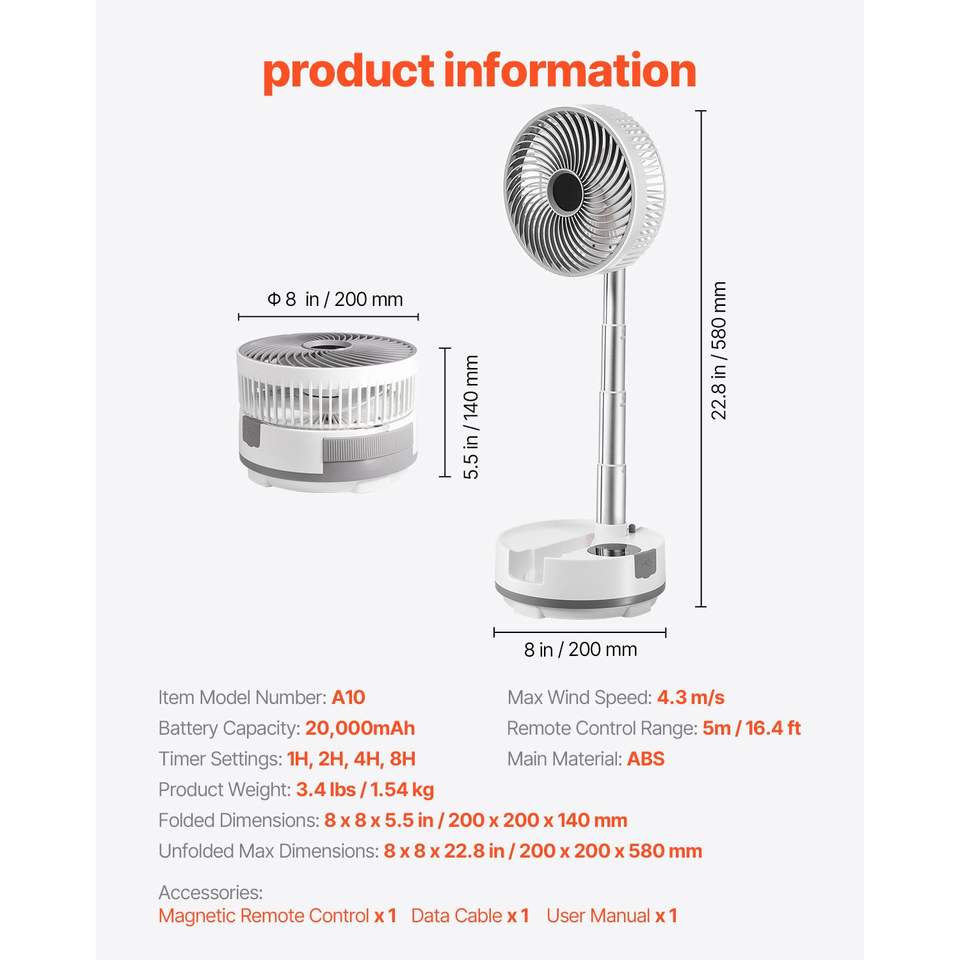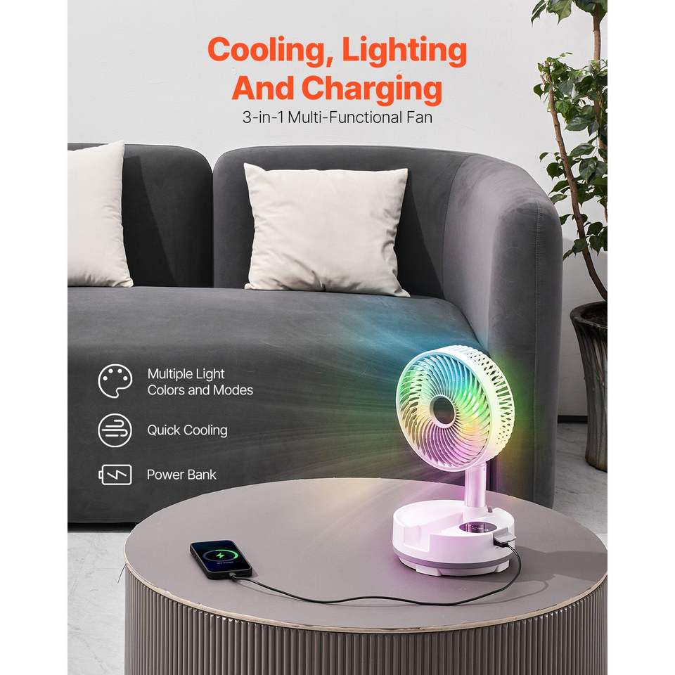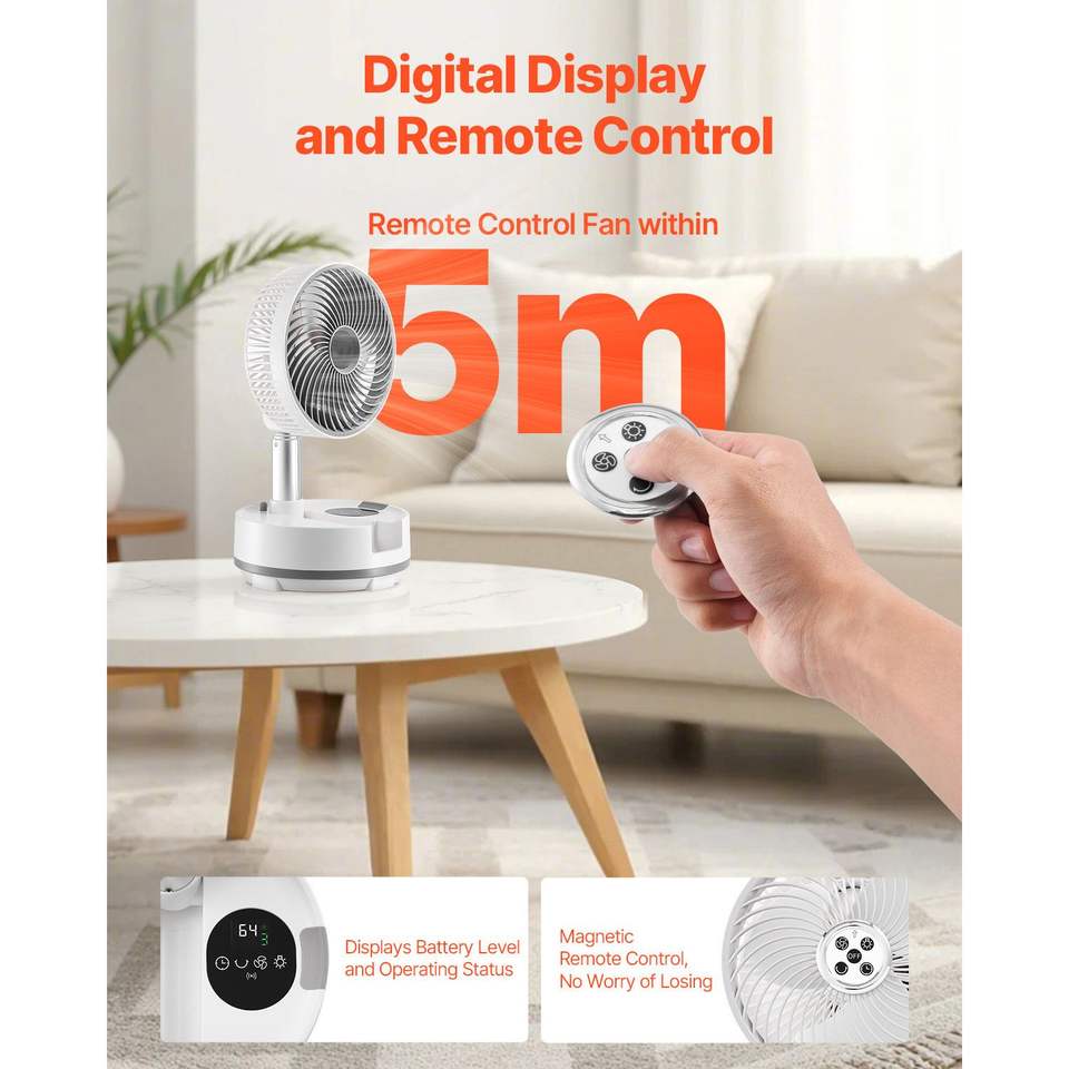 Ventilador Oscilante Portátil 3 en 1 Plegable y Recargable de 8 Pulgadas, Funciona con Batería, Control Remoto, Silencioso, para Escritorio/Mesa