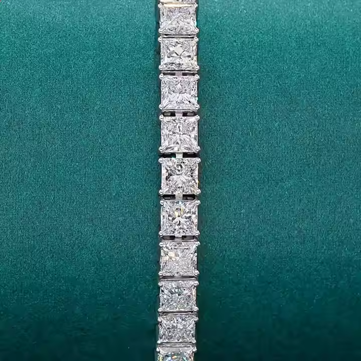 Pulsera de Diamantes de Laboratorio con Corte Princesa de 8 Pulgadas, Plata de Ley Chapada en Oro de 10K, Joyería Étnica Elegante y Duradera, Unisex, Regalo para Fiestas