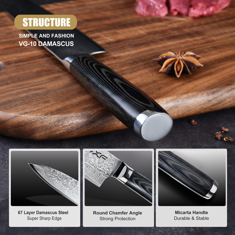 Cuchillos de cocina profesionales de acero de Damasco, 8 pulgadas, VG-10, Chef, con mango de Micarta