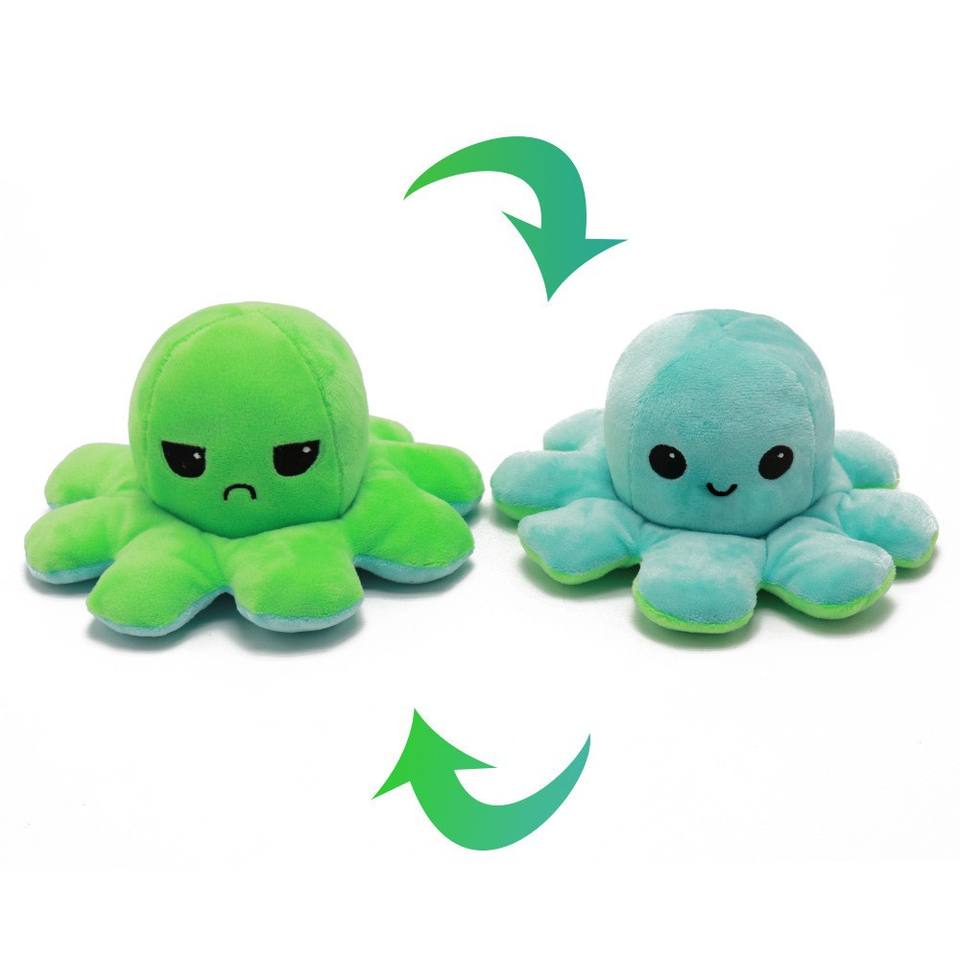 Peluche de Pulpo Reversible de 8 Pulgadas, Muñeco de Peluche de Doble Cara con Detalles Bordados, Peluche Coleccionable para Niños
