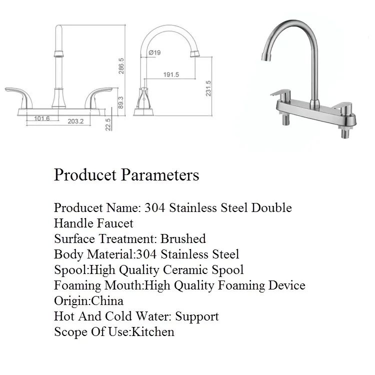 Grifo de cocina para fregadero de 8 pulgadas y grifo de cocina de acero inoxidable 304 con 2 manijas dobles Grifo De Cocina