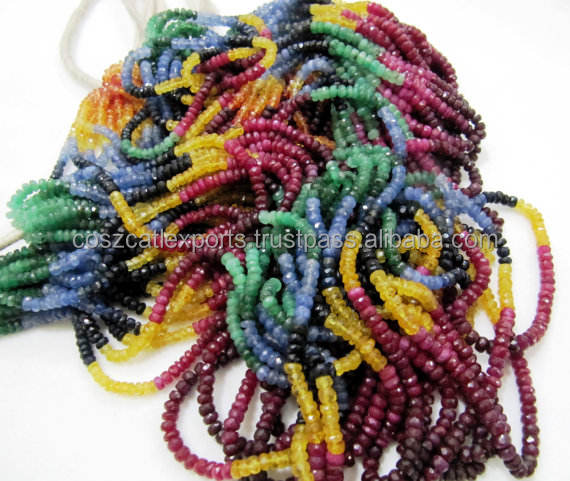 Cuentas de 8 Pulgadas, Multi-Preciosas, Rubí, Esmeralda, Zafiro, Facetadas en Forma de Rondelle, 3-4mm, Color Verde