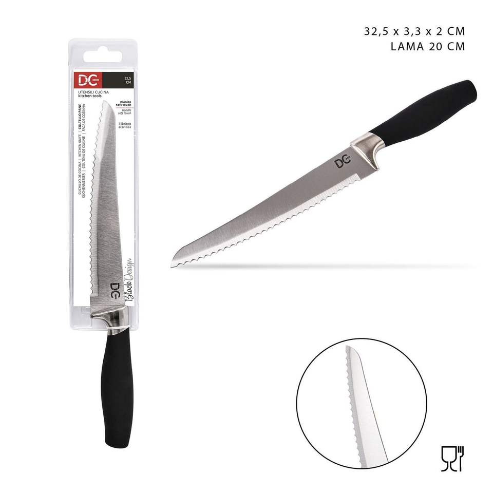 Cuchillo de pan de diseño oriental tradicional de 8 pulgadas, hoja de Metal liso, mango de plástico, utensilio de cocina de 32,5x3,3x2cm, afilado dentado