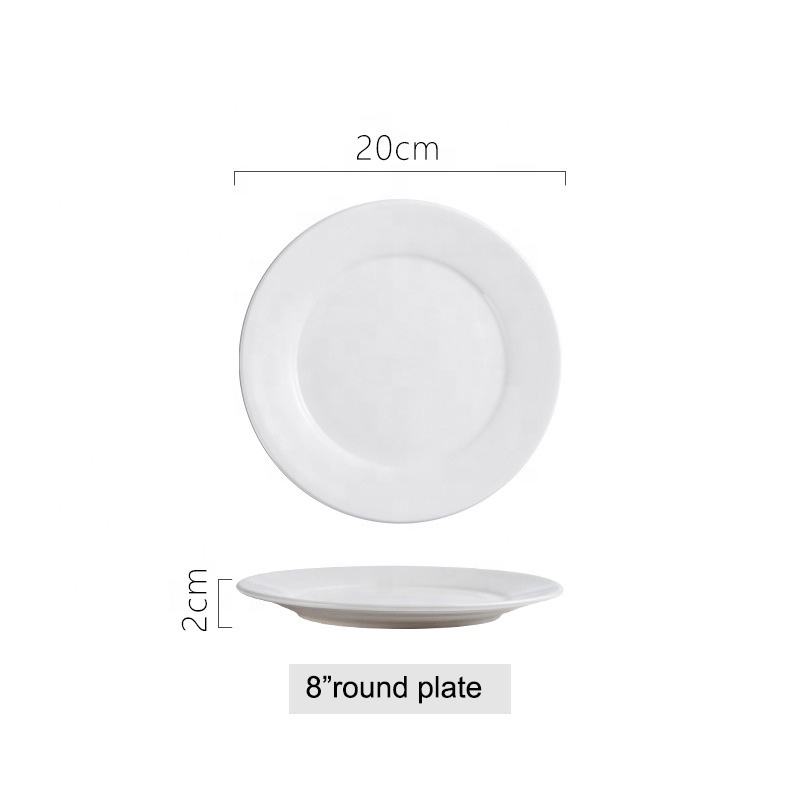 Plato de Porcelana Blanca de 8 Pulgadas para Cena, Venta al por Mayor | Uso en Hoteles y Restaurantes | Vajilla de Cerámica Resistente | Apto para microondas y lavavajillas