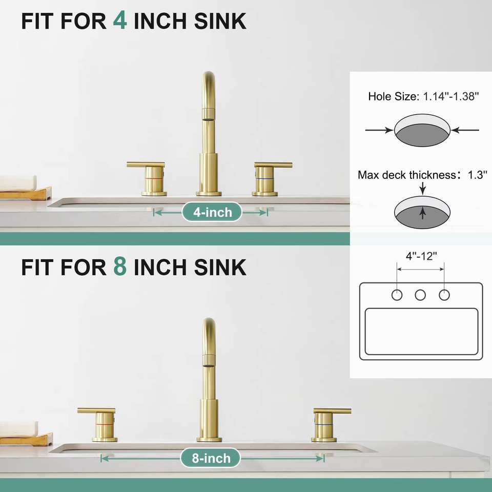 Grifo mezclador de lavabo de baño de 8 pulgadas con 3 orificios para ducha de mano y bañera