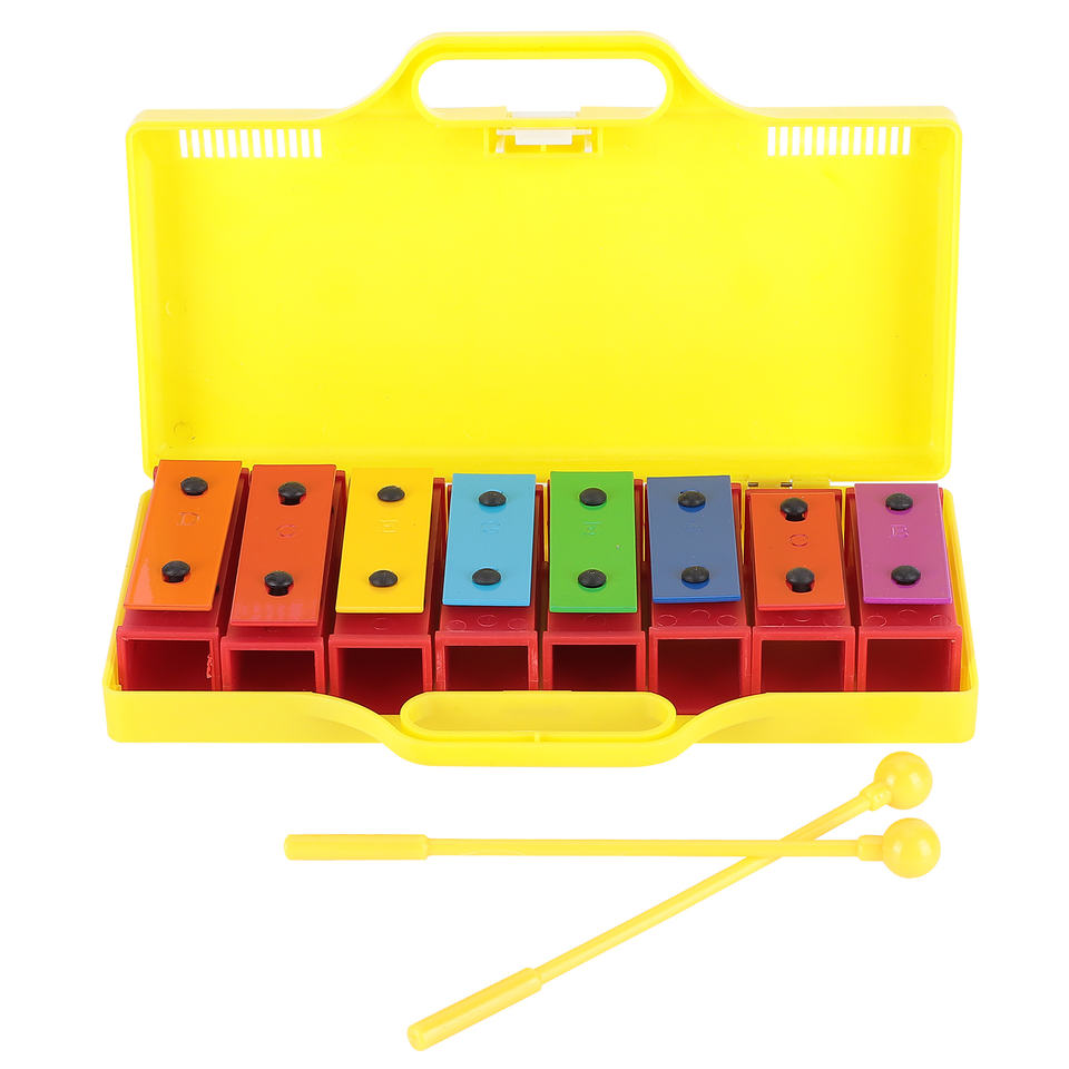 Instrumentos de percusión profesionales de xilófono de 8 notas para niños con 2 baquetas 1 caja amarilla