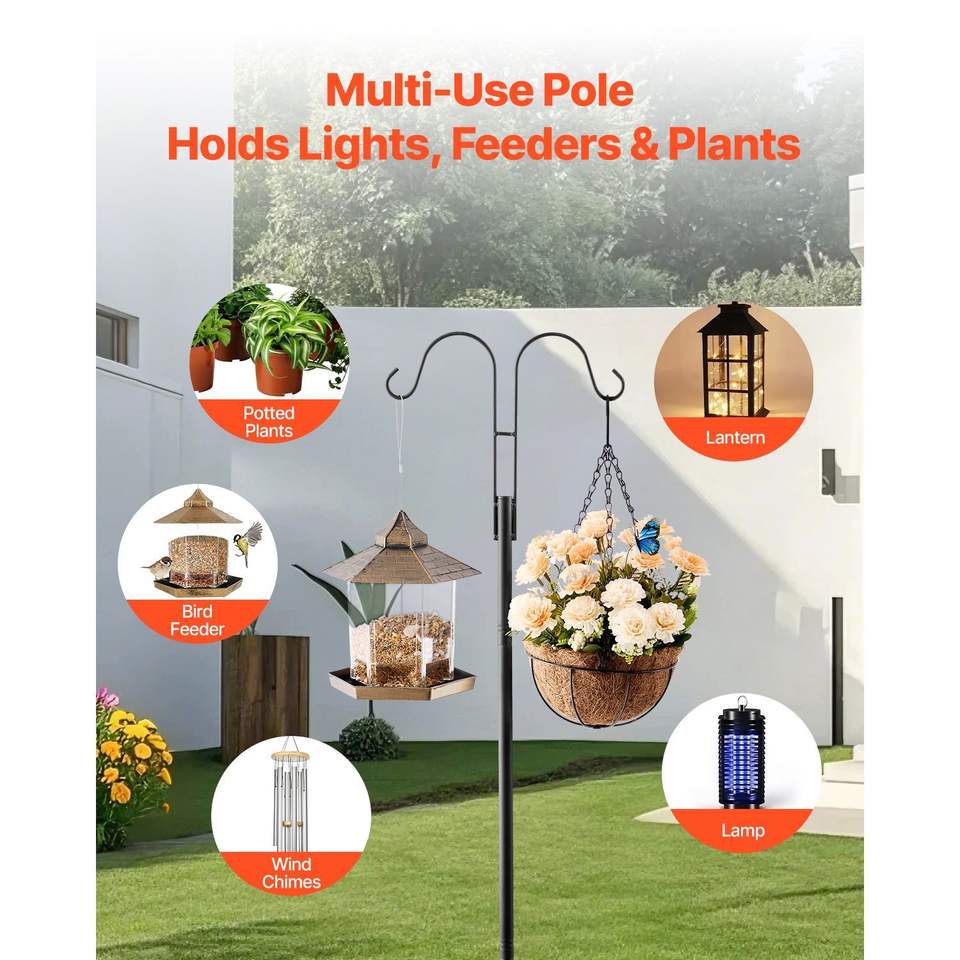 Paquete de 8 Ganchos de Pastor Reforzados de 92 Pulgadas, Postes Dobles de 3/4 de Pulgada para Comederos de Pájaros de Jardín con Suministros para Colibríes y Aves al Aire Libre