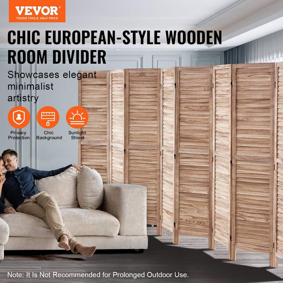 Separador de ambientes plegable de madera de 8 paneles, 66.9 pulgadas de alto, con persianas, para interiores, elegante divisor de habitaciones de madera