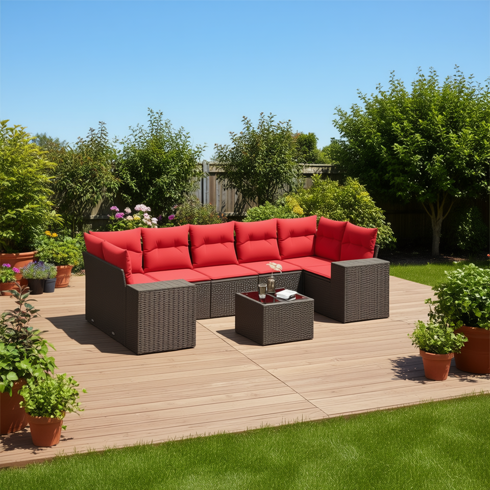 Conjunto de Sofás de Patio de Ratán Sintético Marrón Moderno con Cojines, Muebles de Exterior para 8 Personas, Diseño Contemporáneo