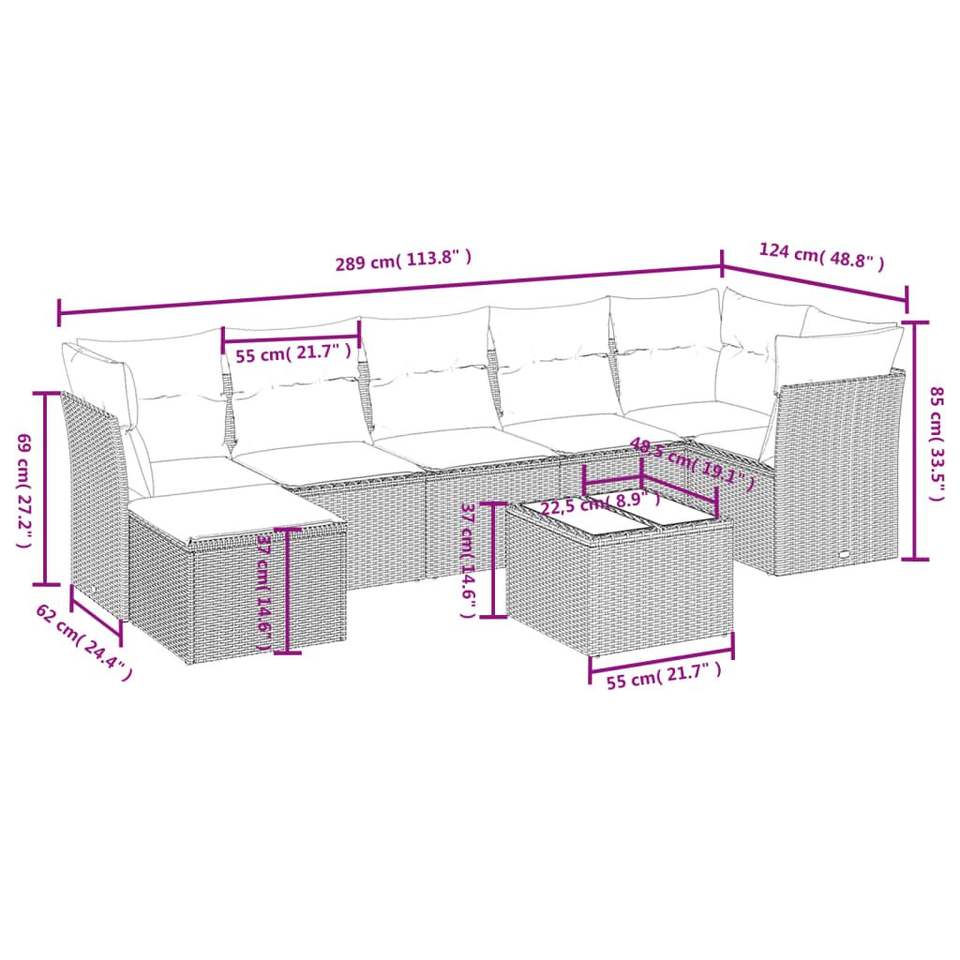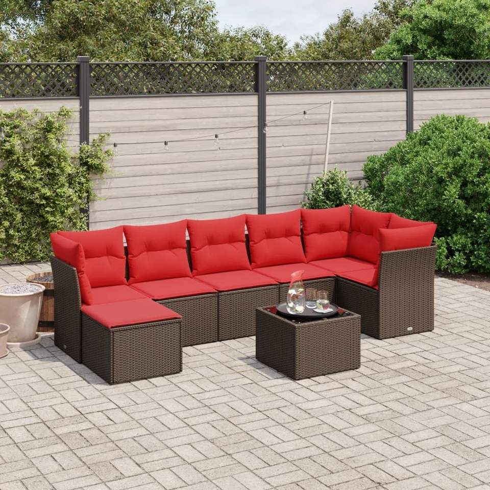 Juego de sofás de patio de ratán sintético marrón de 8 piezas con cojines, elegantes muebles de exterior