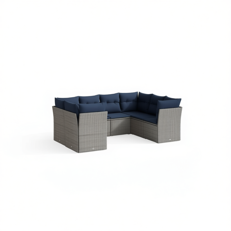 Conjunto de Sofás de Patio de Ratán Sintético Gris para 8 Personas con Cojines, Muebles de Jardín para Exteriores, Estilo Contemporáneo