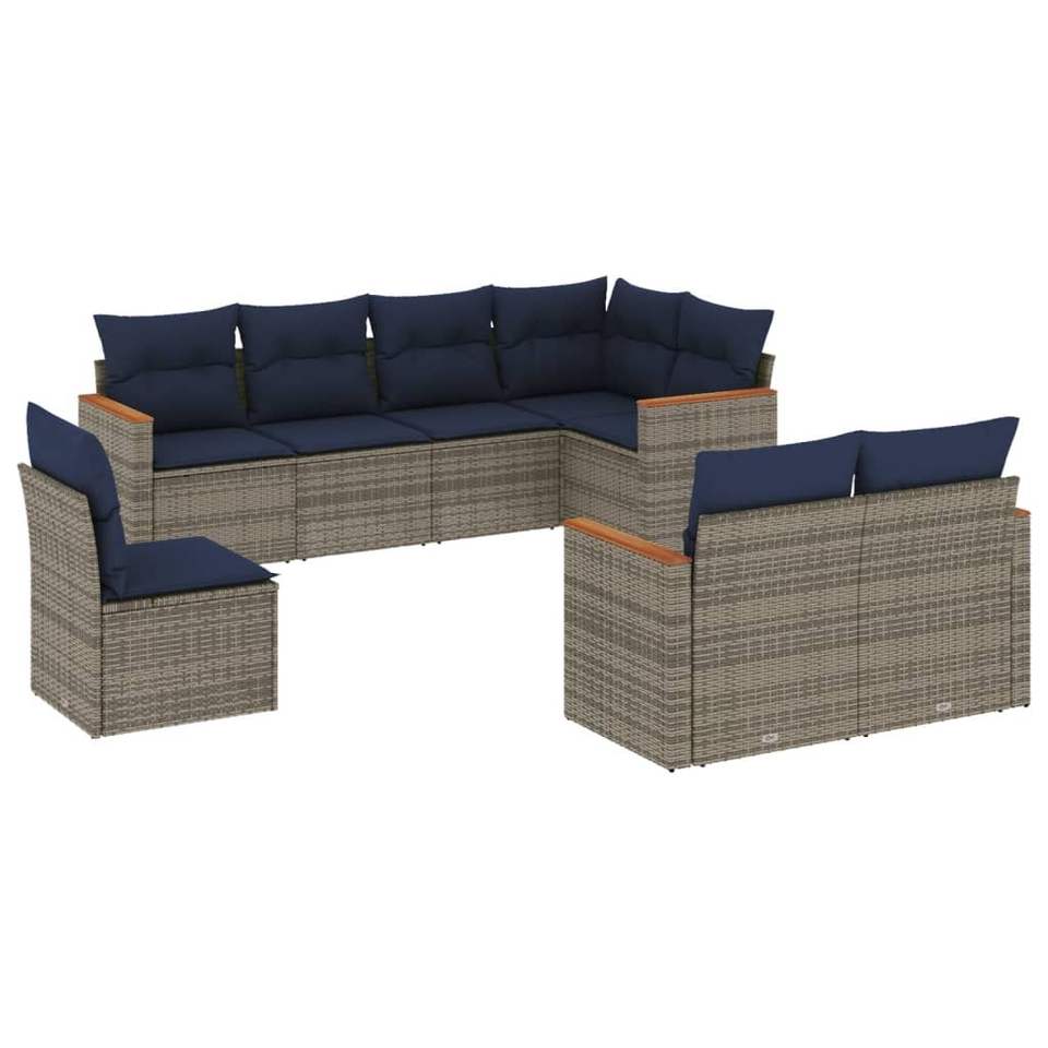 Juego de sofás de jardín de ratán sintético gris de 8 piezas con cojines, muebles de exterior, diseño contemporáneo