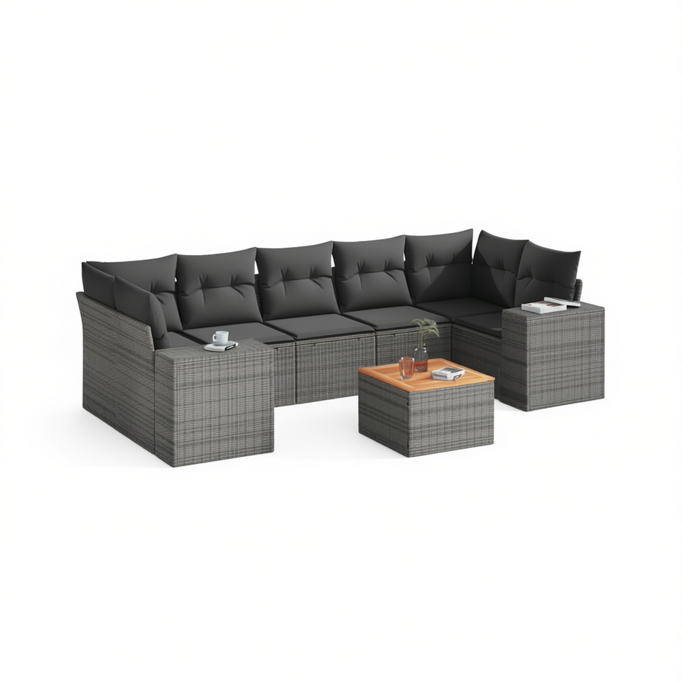 Conjunto de Sofás Modulares de Ratán Gris para Jardín, 8 Plazas, Muebles de Exterior de Estilo Contemporáneo, Resistentes a la Intemperie