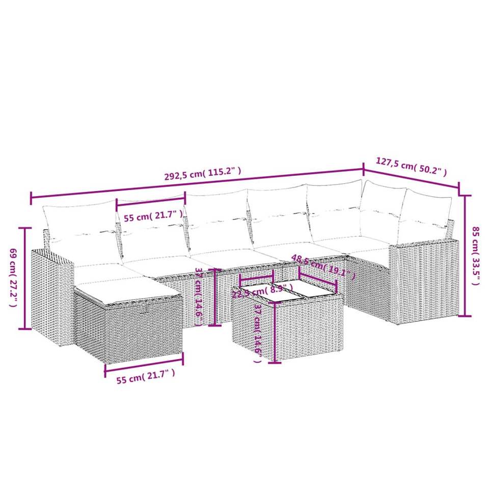 Juego de sofás de ratán sintético marrón para patio, 8 piezas, con cojines, sofás de jardín