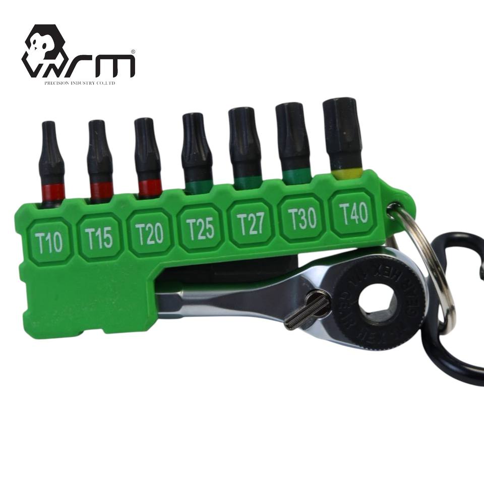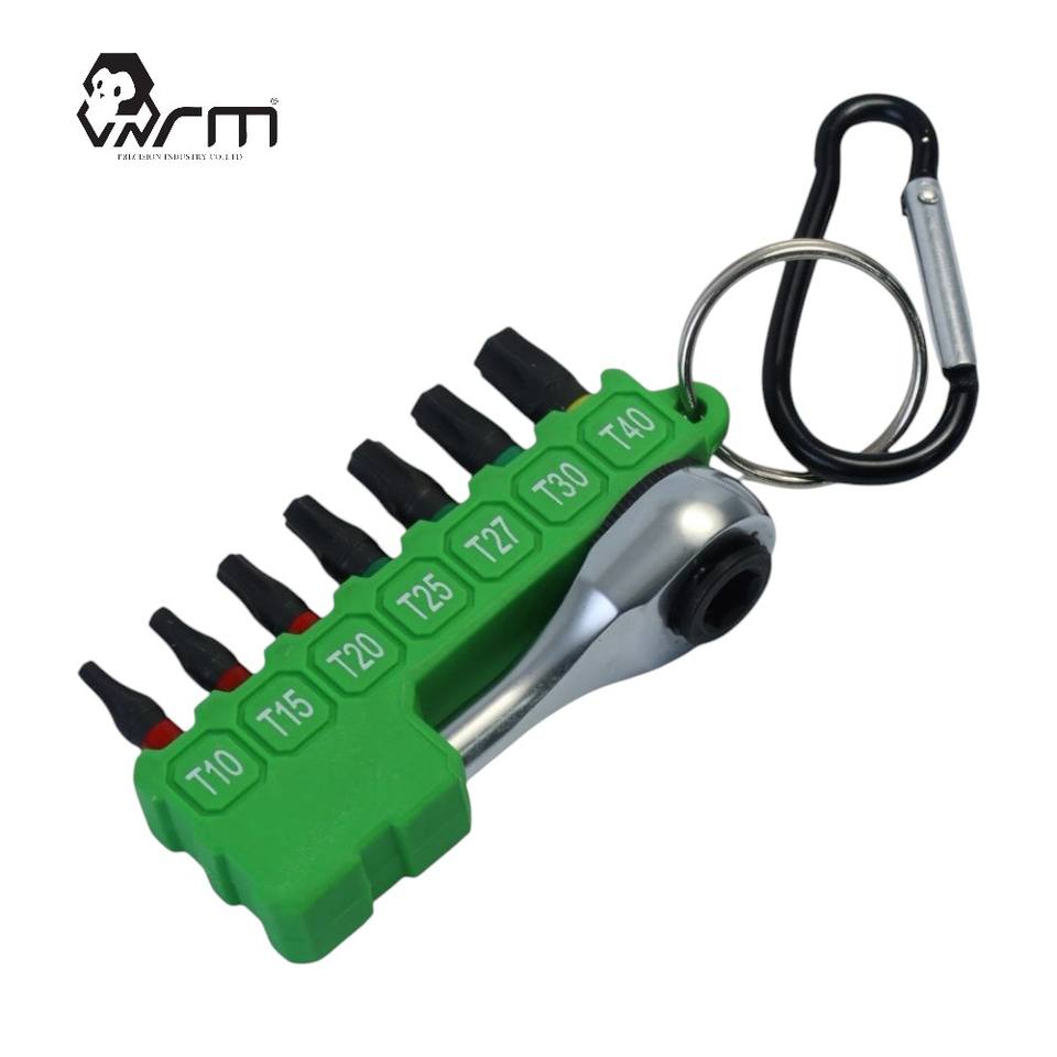 Juego de 8 Puntas T10-T40 con Porta Puntas, Llavero y Trinquete, Longitud Total 13, Acabado en Fosfato de Manganeso, para Perforación de Madera, Hecho en Taiwán