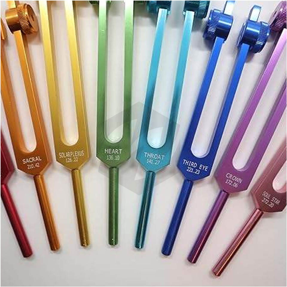 Juego de diapasones ponderados de 8 piezas, 7 frecuencias de Chakra más 1 Tenedor de propósito del alma, instrumentos médicos de terapia musical, curación de sonido