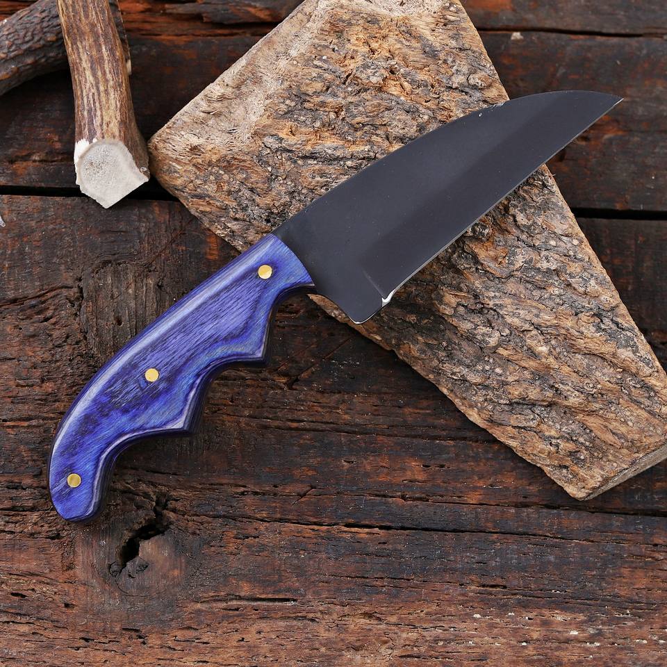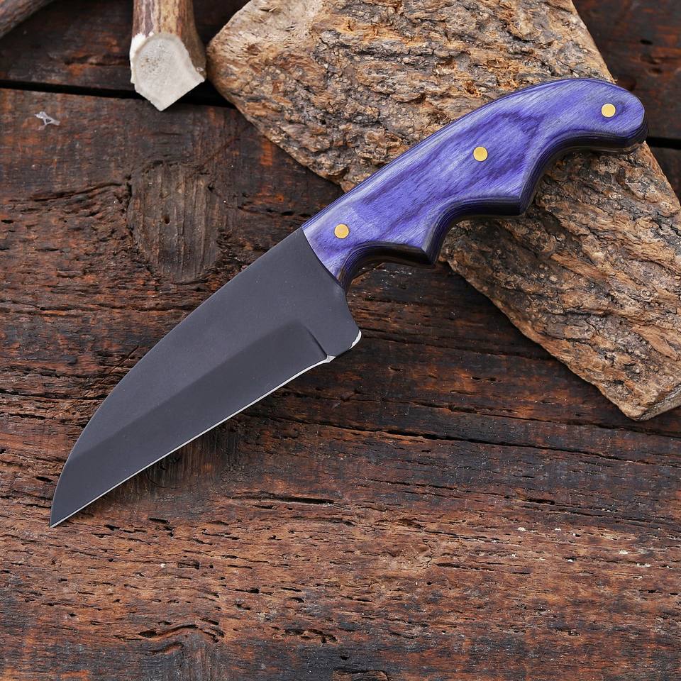 Cuchillo utilitario Wharncliffe de hoja fija de 8 pulgadas con recubrimiento en polvo, mango de madera Pakka de grado industrial, personalizado OEM para caza, desollado y camping