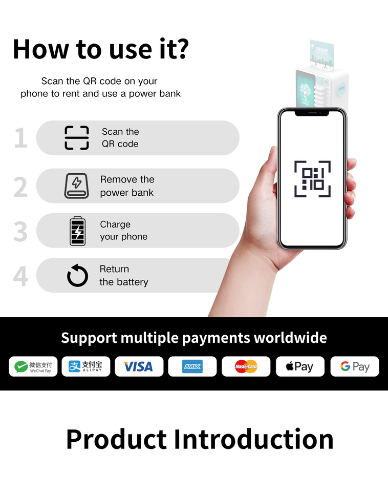 Terminal de Banco de energía para compartir de carga rápida de 8 ranuras: Cargue su teléfono 50% en 30 minutos Estación de alquiler de quiosco para compartir