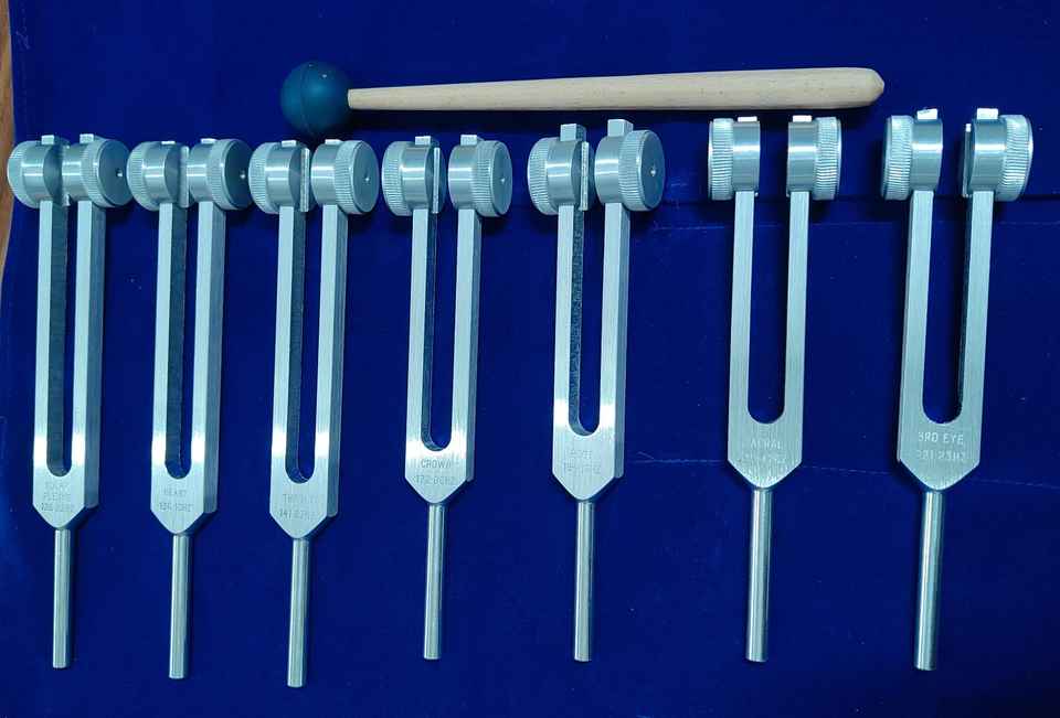 Juego de 8 Diapasones de Chakra con Peso para Terapia de Sonido, Sanación del Corazón, Tercer Ojo y Sacro