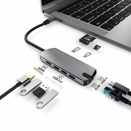 Hub Gigabit Ethernet USB 3,0 de alta velocidad 8 en 1 con 3 puertos USB 3,0, lector de tarjetas SD/TF tipo C USB disponible