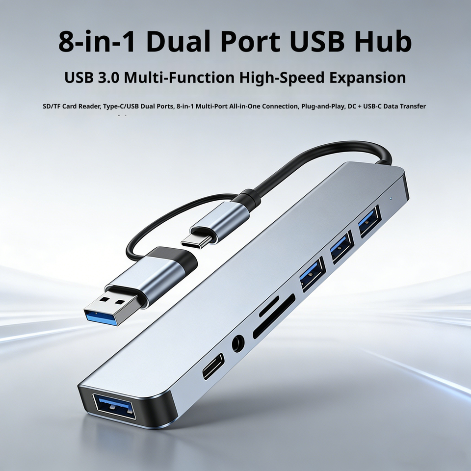 Extensor USB 8 en 1 con Lector de Tarjetas SD/TF, Conector para Auriculares Auxiliar de 3.5 mm, Carcasa de Aluminio, Hub Multipuerto USB 3.0 para Computadora Portátil