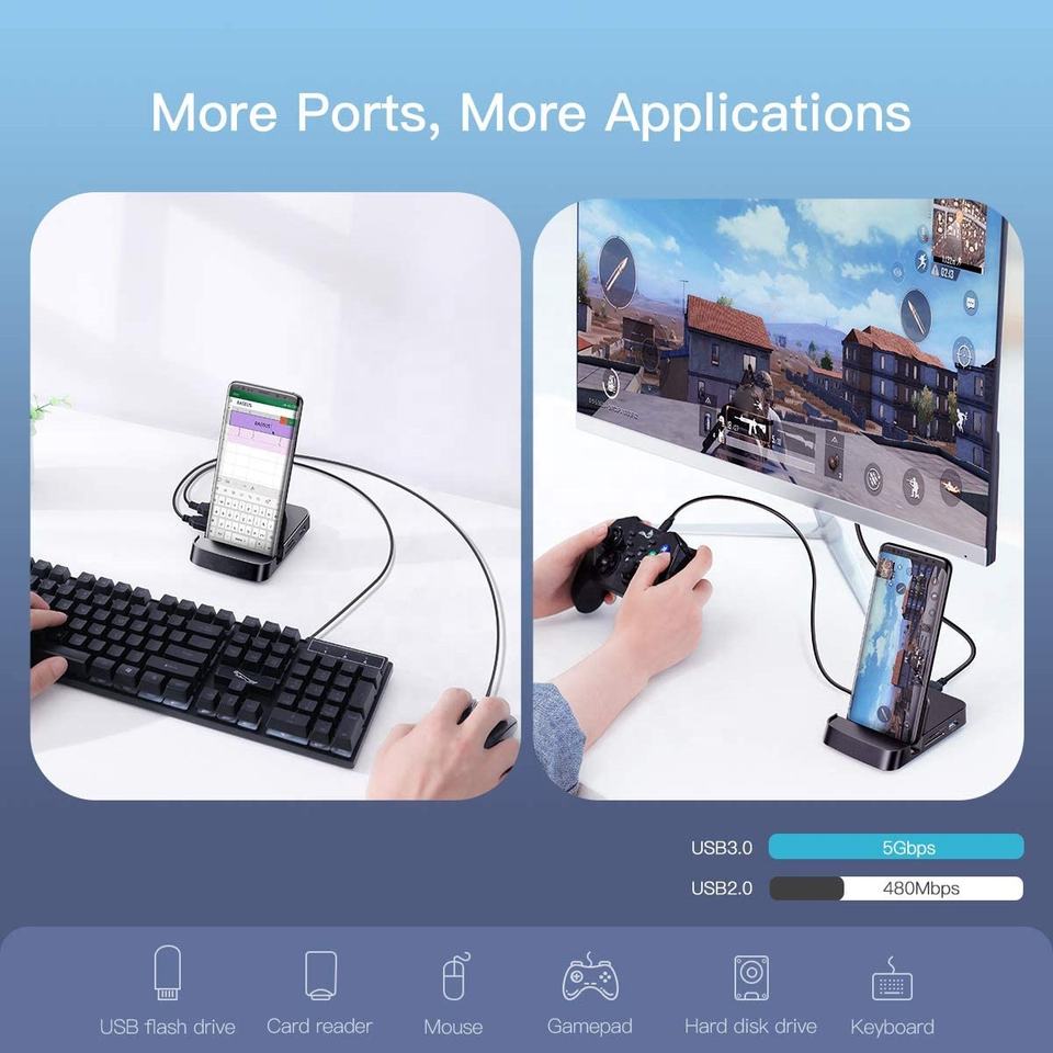 Estación de acoplamiento 8 en 1, conector USB tipo C HDMI para Samsung Galaxy S10 S9 S8 y Note 9 8 y Huawei P30 P20 Pro y Mate 10 y más
