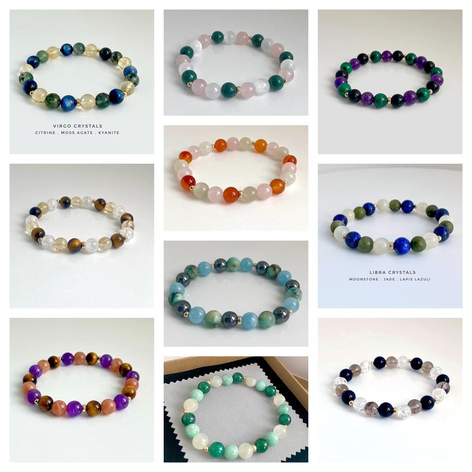Pulsera de cristal "Zodiac Leo" de cuentas lisas redondas de 8mm-Pulseras de piedras preciosas de cordón elástico-Pulsera curativa del zodiaco